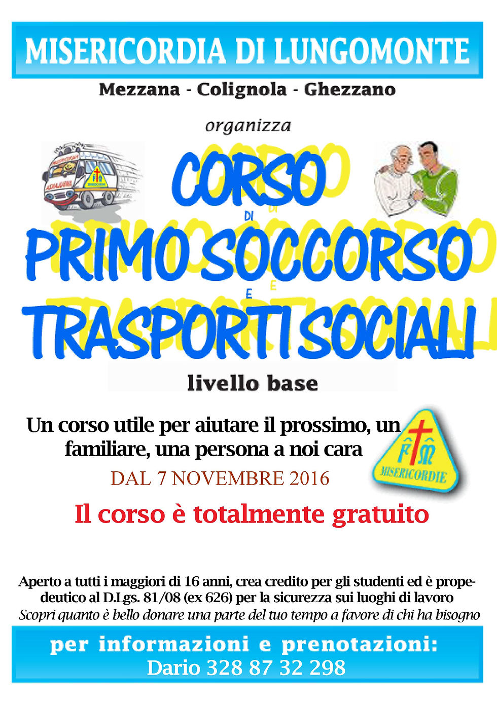 Il 7 novembre inizierà presso la Misericordia di Lungomonte il corso per soccorritori di livello base. Tra gli argomenti che saranno trattati: nozioni di base per svolgere servizio di emergenza 118 in ambulanza, BLS (rianimazione cardio-polmonare) e disostruzione delle vie aeree. Il corso è totalmente gratuito e da la possibilità di avvicinarsi al mondo del volontariato!! PARTECIPATE NUMEROSI!!